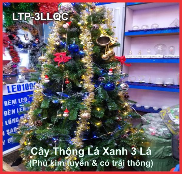 Cây thông Noel xanh loại 3 Lá gắn trái thông - 2,4m